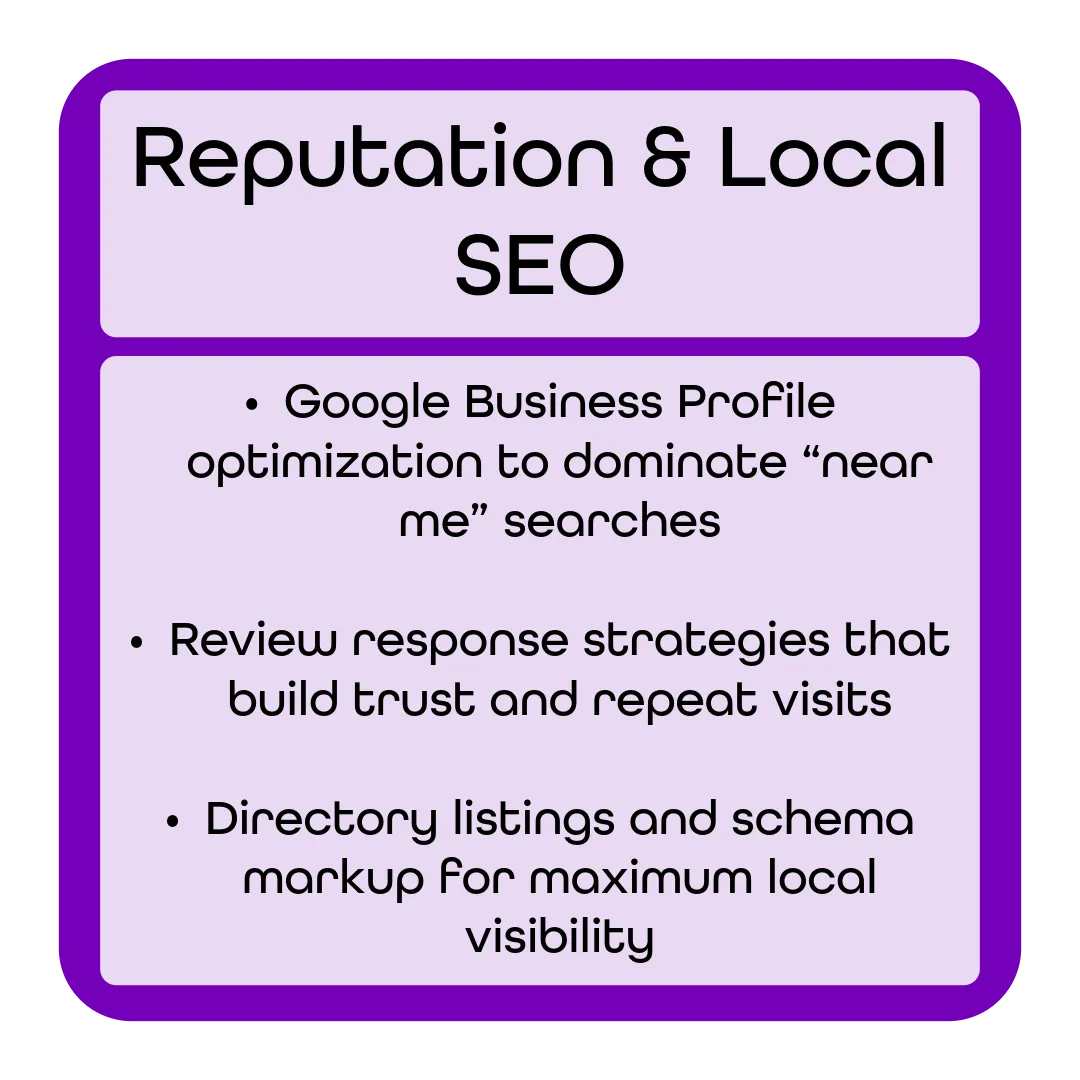 We deliver end-to-end marketing solutions tailored to the unique rhythm of your business, from the lunch rush at a neighborhood diner to the 6 PM surge at a boutique gym. Every service is scoped and priced only after we understand your space, your audience, and your growth targets.